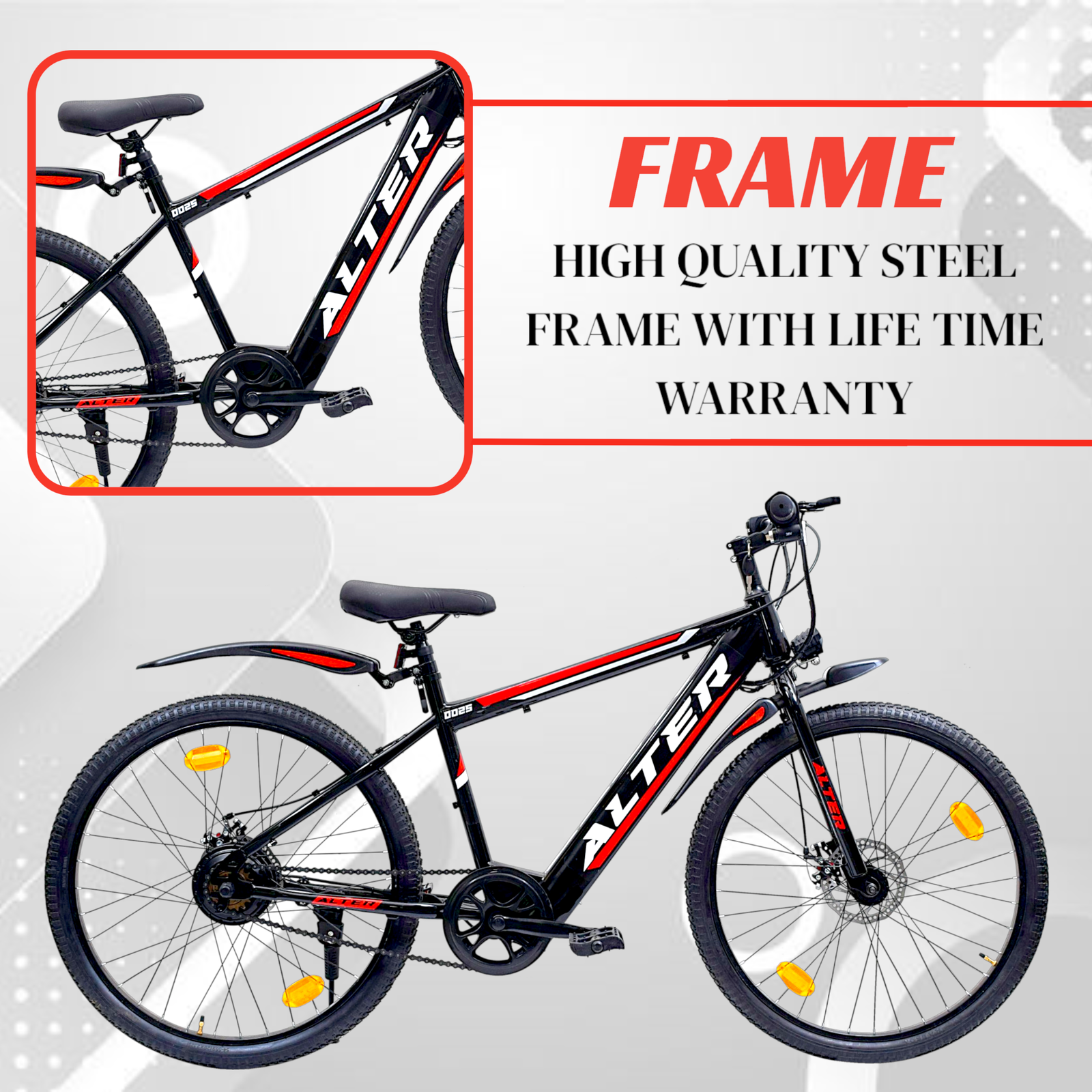 • DUAL DISC BRAKE SYSTEM | 26″ INCH WHEEL | ADJUSTABLE SEAT | HIGH QUALITY STEEL FRAME