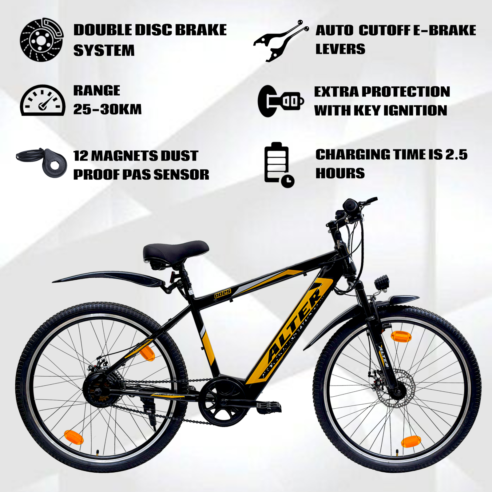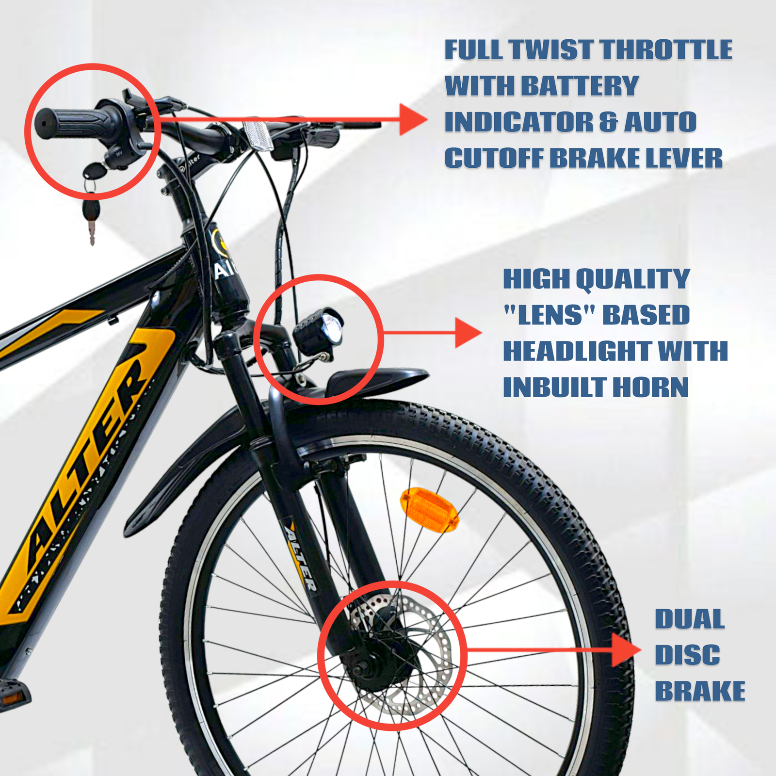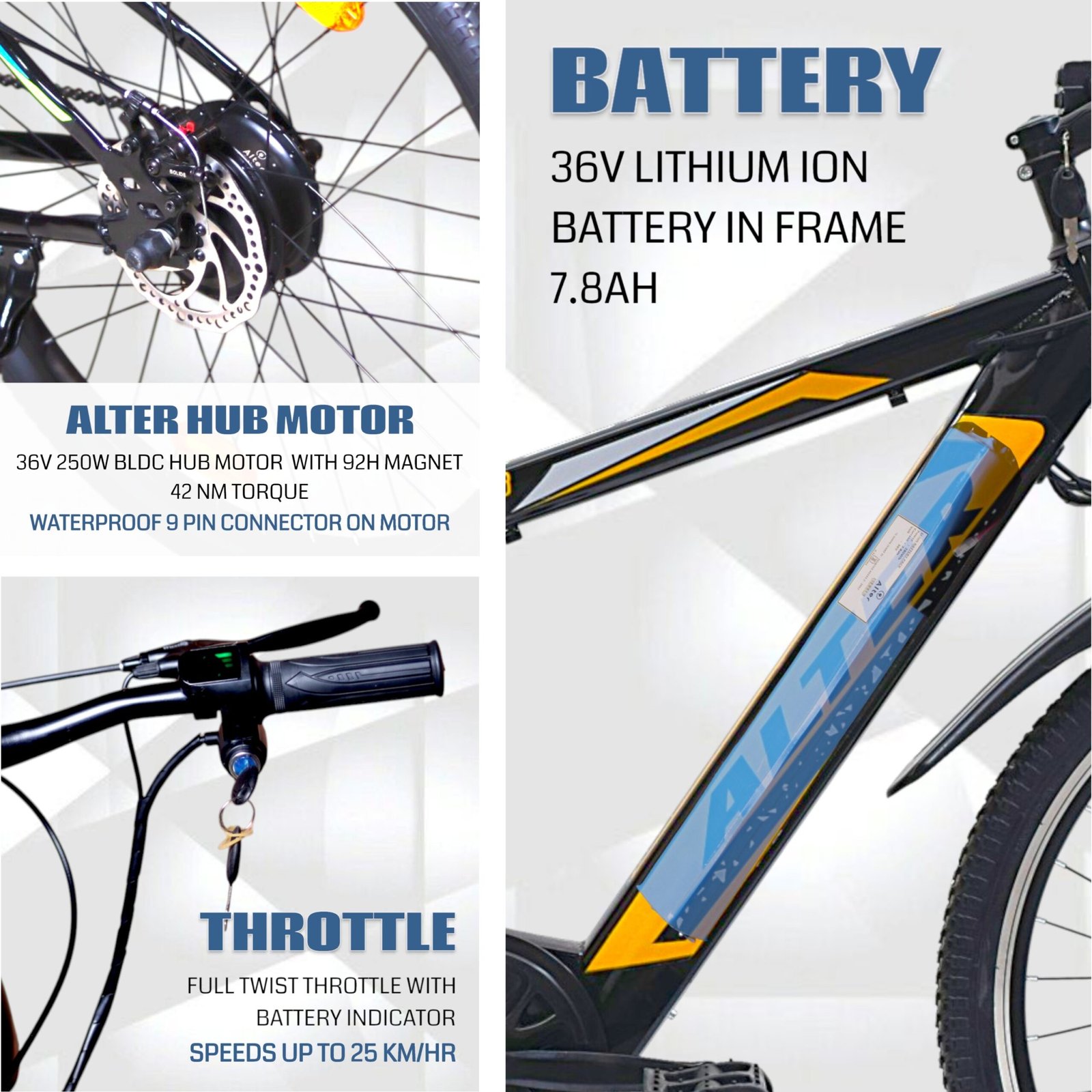 ALTER 26″ 002S PRO MODEL ELECTRIC CYCLE WITH 36V 250W BLDC HUB MOTOR | LI-ION BATTERY | 95% PRE-ASSEMBLED WITH CHARGER
